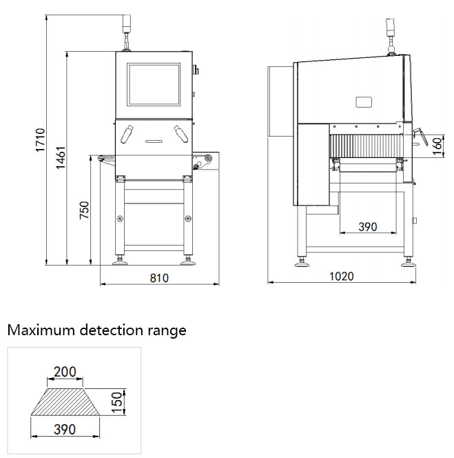 Remarks: The size of foreign matters that can be detected is related to the material composition, packaging materials, thickness and other parameters in the product. Please refer to the actual product test results.